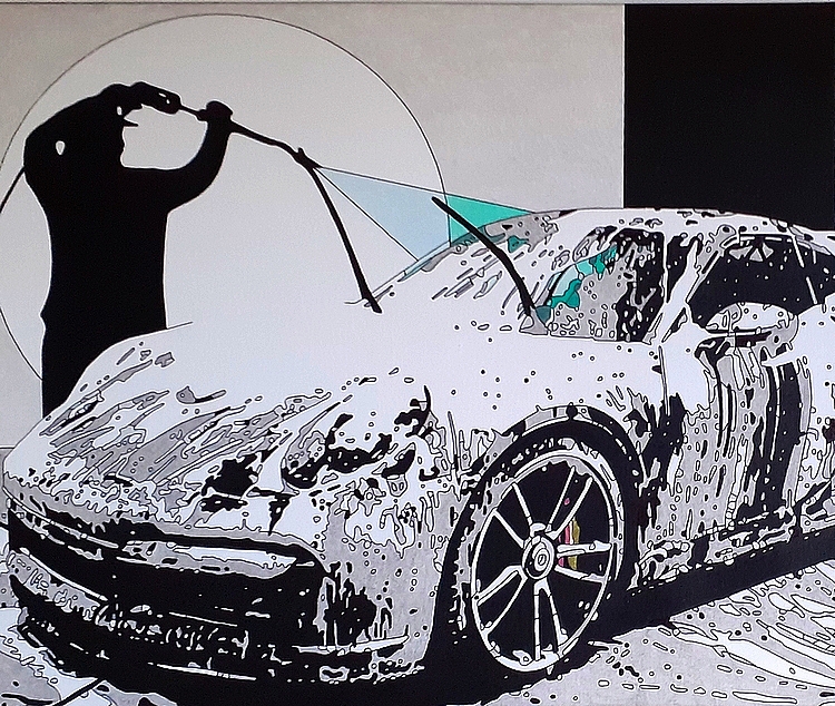 Collage et peinture Porsche 70 x 50 cm